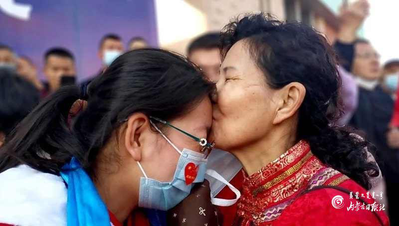 記者采訪那仁格日勒,“是否赴武漢臨行前也喝過爸媽的一杯送行酒?”,她回答:“沒有,那時太匆忙,顧不上。上午12點(diǎn)接到通知,下午2點(diǎn)50分就集合出發(fā),還沒來得及告訴姐姐。”,她說,盡管在之前就自愿報過名了,但沒想到出發(fā)竟是那樣突然。