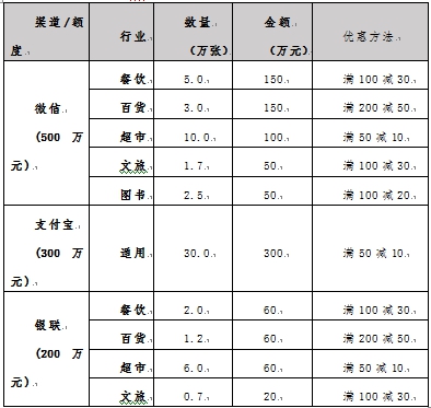 綜合考慮我市消費者支付習慣和各平臺用戶的覆蓋面,我們選擇了目前使用最普及的微信、支付寶、云閃付三大平臺,最大限度滿足各類消費群體的消費需求,提高消費券資金的使用效率。
