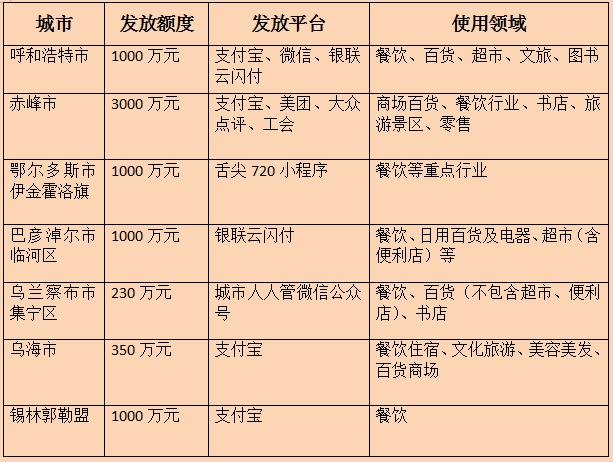 內(nèi)蒙古七城市消費(fèi)券發(fā)放一覽表