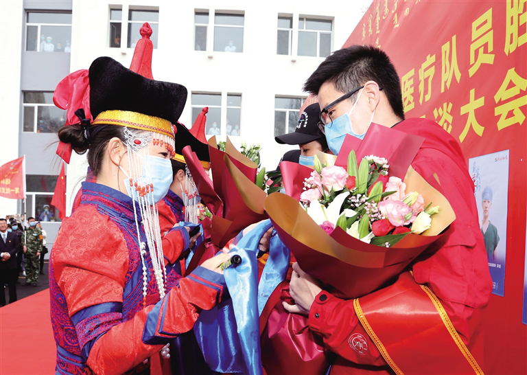 當(dāng)天,興安盟人民醫(yī)院門前舉行了隆重的歡迎儀式,迎接他們的不僅有鮮花和掌聲,還有親人的緊緊擁抱。