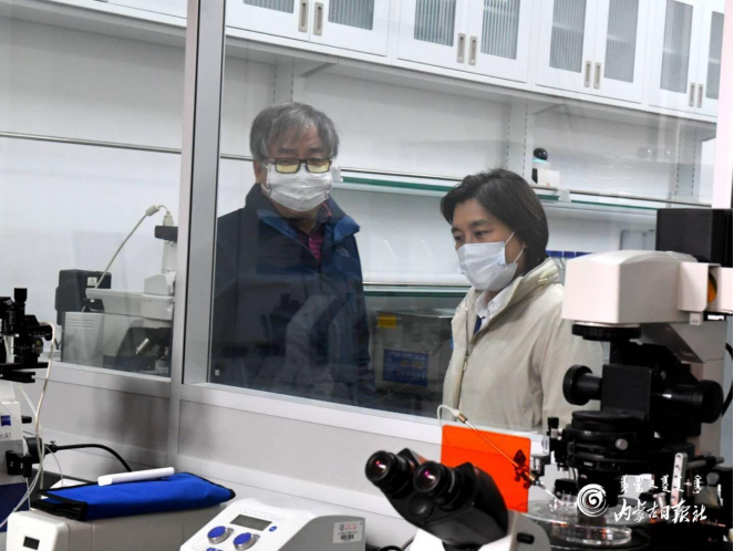 內(nèi)蒙古大學(xué)“省部共建草原家畜生殖調(diào)控與繁育國家重點(diǎn)實(shí)驗(yàn)室”,于2017年9月獲得自治區(qū)政府和科技部批準(zhǔn)立項(xiàng)建設(shè),是目前自治區(qū)唯一一所依托高校建立的國家重點(diǎn)實(shí)驗(yàn)室。在省部共建草原家畜生殖調(diào)控與繁育國家重點(diǎn)實(shí)驗(yàn)室,布小林詳細(xì)了解實(shí)驗(yàn)室的研究重點(diǎn)、取得的成果以及轉(zhuǎn)化應(yīng)用等情況。她還與實(shí)驗(yàn)室李光鵬教授及科研人員深入交流,認(rèn)真聽取大家對(duì)自治區(qū)實(shí)施現(xiàn)代種業(yè)工程的意見和建議,希望實(shí)驗(yàn)室進(jìn)一步匯聚科學(xué)研究能力,不斷提升科技創(chuàng)新水平,為提高草原家畜繁育效率、選育優(yōu)良草原家畜新品種、建立草原生態(tài)養(yǎng)殖模式作出貢獻(xiàn)。