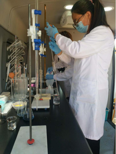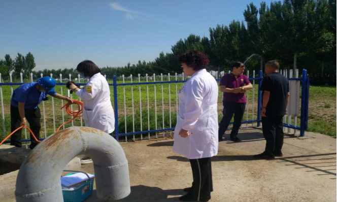 六、現(xiàn)場(chǎng)檢測(cè)。水質(zhì)檢測(cè)中心14名檢測(cè)人員分別對(duì)現(xiàn)場(chǎng)采集的水樣進(jìn)行檢測(cè),檢測(cè)項(xiàng)目有:色度、肉眼可見(jiàn)物、臭和味、渾濁度、pH、電導(dǎo)率、總硬度、氯化物、游離余氯,并填寫原始記錄。