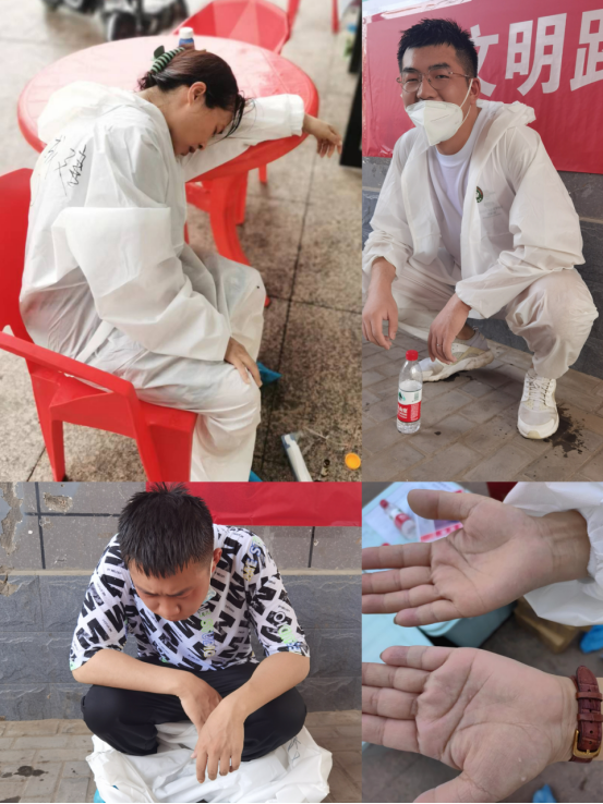 炎炎夏日,烈日當(dāng)頭,8月的烏海天氣異常炎熱,防護(hù)服密不透氣,志愿者們衣衫已被汗水全部浸濕,為減少對防護(hù)服穿脫造成的污染,志愿者們持續(xù)工作,堅(jiān)持不喝水、不上洗手間、不中途休息,持續(xù)換崗時(shí)間,才迎來寶貴休息時(shí)間。志愿者的奉獻(xiàn)和擔(dān)當(dāng)精神,過往的群眾都看在眼里、暖在心里,不少熱心居民為工作人員們送上了葡萄糖水、雪糕、冰飲等物資,點(diǎn)滴愛心匯聚強(qiáng)大力量,無私奉獻(xiàn)、互幫互助的志愿者精神在這里傳遞。愛心居民的愛心舉動(dòng),也進(jìn)一步鼓舞了志愿者守護(hù)大家生命健康安全的決心和信心!