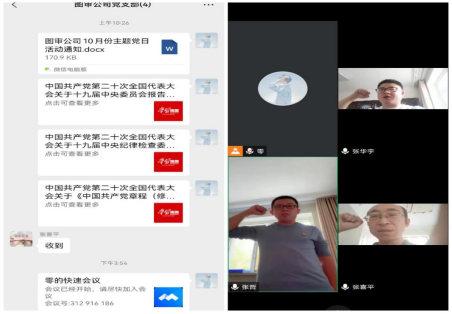 10月24日下午,集團(tuán)公司機(jī)關(guān)黨支部全體黨員、入黨積極分子共40名同志通過騰訊會議APP采取線上形式召開主題黨日活動。會議線下主會場由集團(tuán)公司閉環(huán)管理的12名黨員和積極分子組成,與線上的全體黨員首先進(jìn)行了主題黨日的前四項規(guī)定動作,奮戰(zhàn)在抗疫一線的同志們帶領(lǐng)大家奏唱國歌、重溫入黨誓詞、領(lǐng)誦黨章、主動繳納黨費。之后,集團(tuán)公司黨委書記郝關(guān)峰,黨委委員、紀(jì)委書記張永東領(lǐng)學(xué)了《中國共產(chǎn)黨第二十次全國代表大會關(guān)于十九屆中央委員會報告的決議》《中國共產(chǎn)黨第二十次全國代表大會關(guān)于十九屆中央紀(jì)律檢查委員會工作報告的決議》《中國共產(chǎn)黨第二十次全國代表大會關(guān)于中國共產(chǎn)黨章程(修正案)的決議》。集團(tuán)公司機(jī)關(guān)黨支部書記喬娜通報了本次疫情防控工作相關(guān)情況。