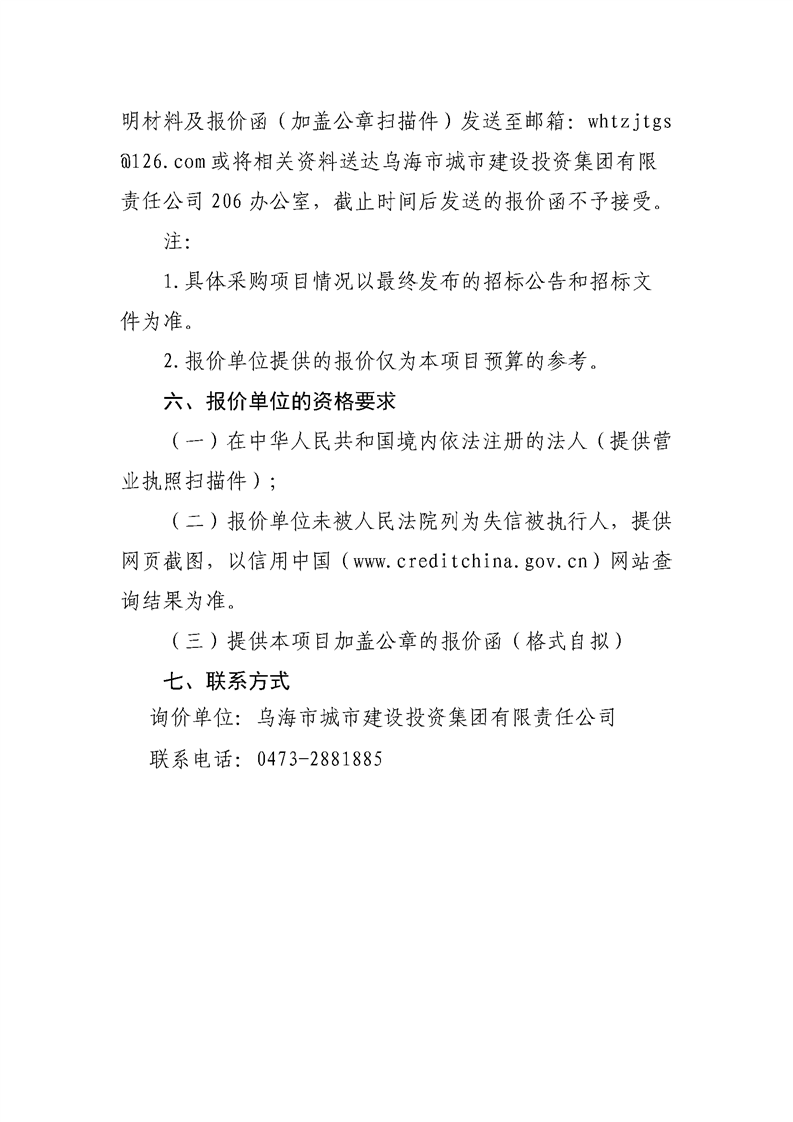 - 2025-09-17烏海市濱河城市運營服務(wù)有限責任公司廣告設(shè)計、制作、安裝服務(wù)商采購詢價文件