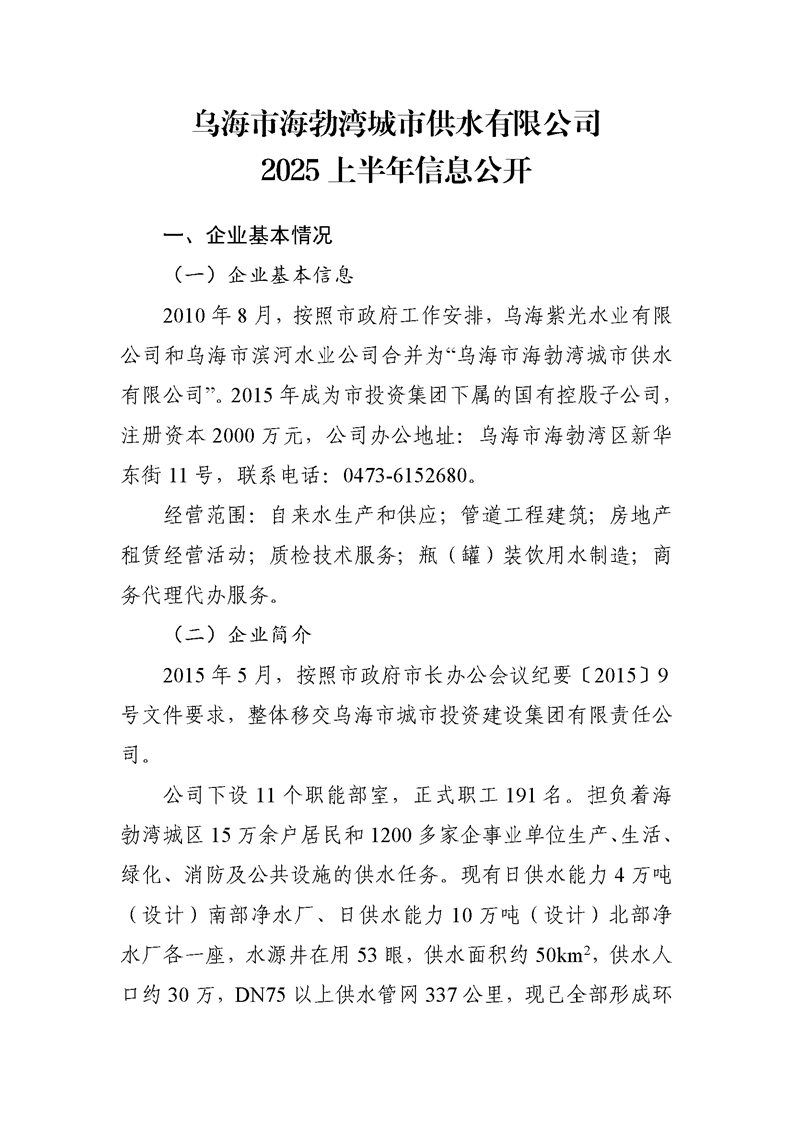 - 2025-03-10烏海市海勃灣城市供水有限公司2024年度信息公開(kāi)報(bào)告