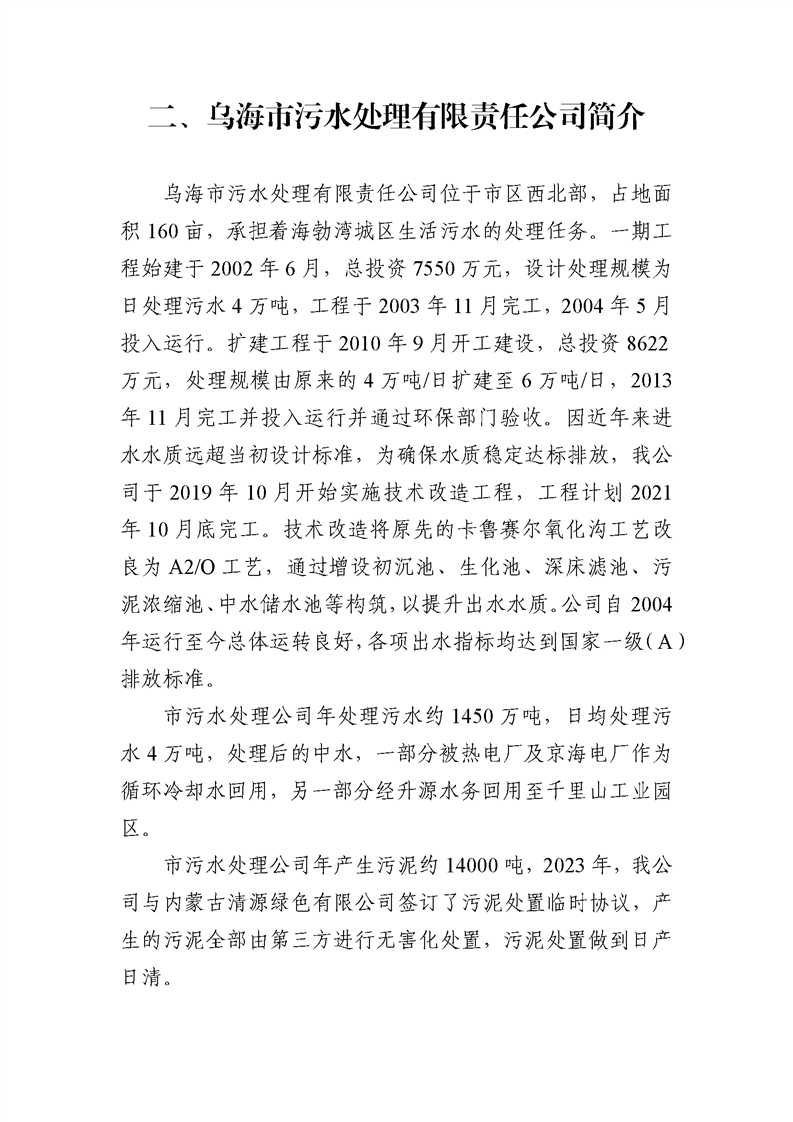 - 2025-04-10烏海市污水處理有限責(zé)任公司2024年度信息公開(kāi)報(bào)告