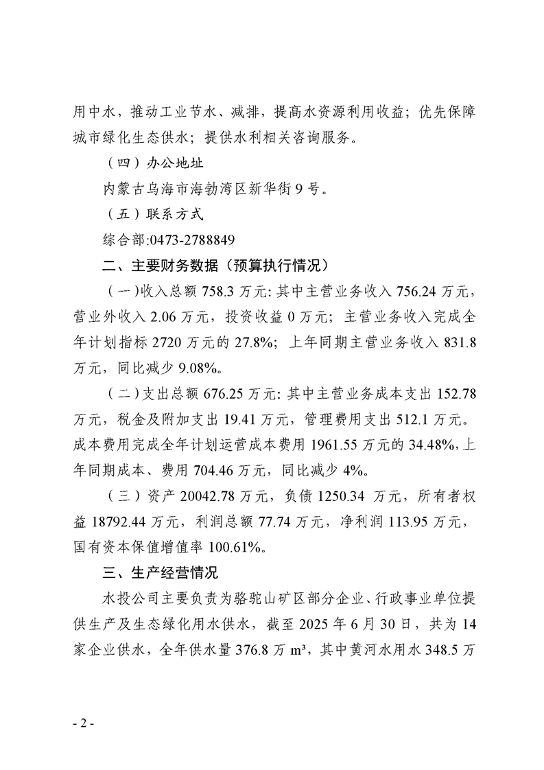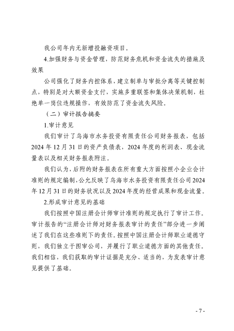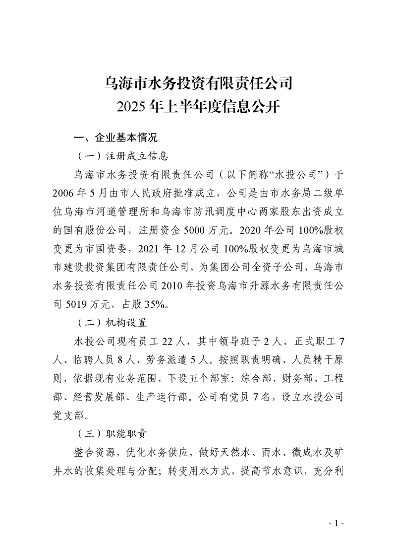 - 2025-03-10烏海市水務投資有限責任公司2024年度信息公開報告