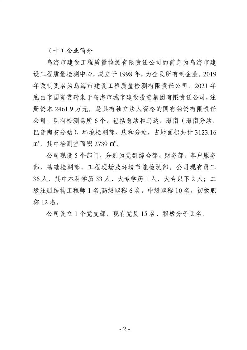 烏海市建設(shè)工程質(zhì)量檢測(cè)有限責(zé)任公司2025年三季度信息公開