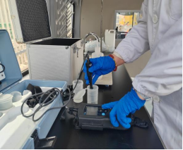 演練現(xiàn)場,水質(zhì)檢測車第一時間奔赴“事故”現(xiàn)場。檢測車配備了先進的檢測設備,能在短時間內(nèi)對多種水質(zhì)指標進行初步分析,為后續(xù)精準檢測提供方向。抵達現(xiàn)場后,檢測人員迅速行動,他們手持便攜儀器對水源水、出廠水和管網(wǎng)水進行現(xiàn)場檢驗。這些便攜儀器操作簡便、檢測速度快,能快速檢測出pH值、渾濁度、色度、總硬度等關(guān)鍵指標,初步判斷水質(zhì)是否存在異常。檢測人員嚴格按照規(guī)范流程操作,爭分奪秒地獲取檢測數(shù)據(jù),不放過任何一處潛在隱患。