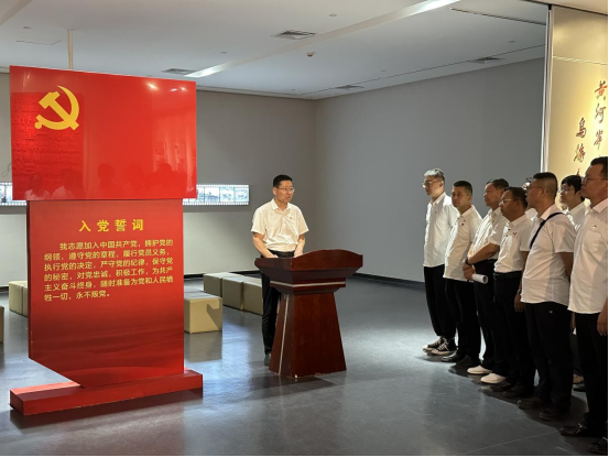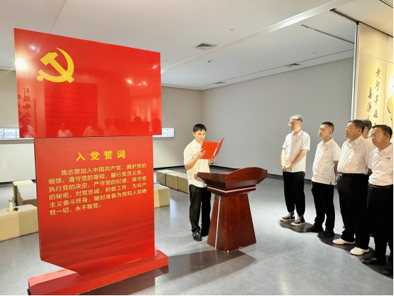 隨后,活動(dòng)進(jìn)入政治生日環(huán)節(jié)。在鮮紅的黨旗前,全體黨員神情肅穆,右手握拳高舉,齊聲重溫入黨誓詞:“我志愿加入中國(guó)共產(chǎn)黨,擁護(hù)黨的綱領(lǐng),遵守黨的章程……”字字千鈞的錚錚誓言在展廳內(nèi)激蕩回響,這不僅是黨員們對(duì)黨的赤誠(chéng)告白,更彰顯著他們?yōu)楣伯a(chǎn)主義事業(yè)奮斗終身的堅(jiān)定信念。新發(fā)展黨員代表走上臺(tái)前,以真摯的話語(yǔ)作出莊嚴(yán)承諾;最后,黨委書(shū)記王海軍發(fā)表《做新時(shí)代合格共產(chǎn)黨員》主題寄語(yǔ),激勵(lì)全體黨員在新時(shí)代新征程上勇?lián)姑?、砥礪前行。