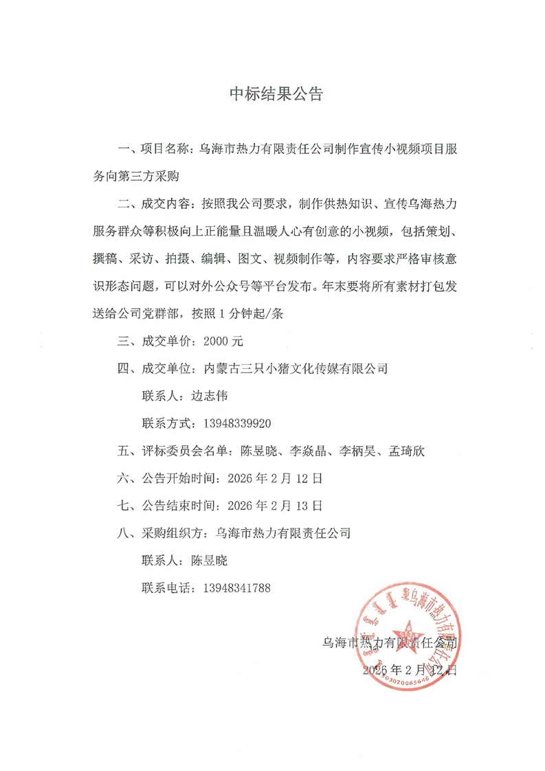 - 2026-03-132026年烏海市澤匯園林綠化工程有限公司育花溫室勞務(wù)中標(成交)結(jié)果公示